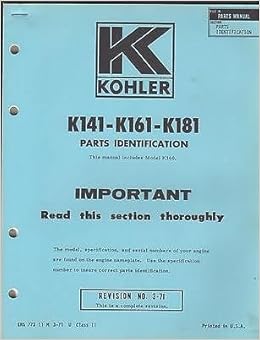These technical documents and manual will help you learn more about your Kohler engine and help ensure years of steady ... K161 (Service Manual).