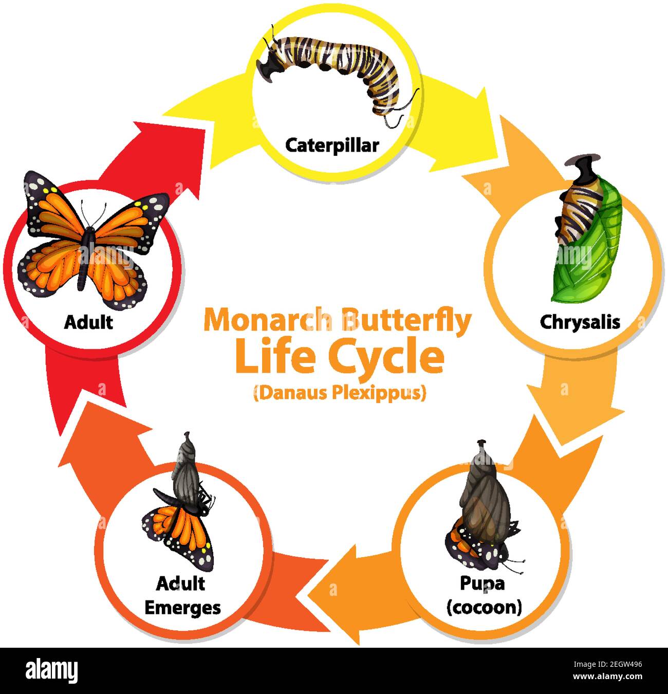 The Monarch Butterfly Life Cycle. There are four stages in the life cycle of a butterfly. The stages include, egg, larva, pupa, and adult. The entire process is called complete metamorphosis and is one of two ways insects develop from an egg to an adult. The other type of insect development is called incomplete metamorphosis.