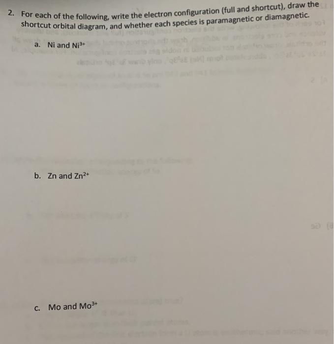 b. Au+ c. Mo3+ d. Zr2+. Answer. a. diamagnetic. (DIAGRAM NOT ...