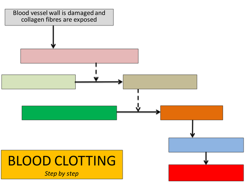 The three stages of blood clotting are the vascular phase, the platelet phase and the coagulation phase. The entire process of blood clotting may be referred to as hemostasis. The process takes place in order to prevent the body from losing too much blood due to injury. When the human body is injured, a natural healing process is initiated in ... 730 blood clotting diagram stock photos, vectors, and illustrations are available royalty-free. See blood clotting diagram stock video clips. of 8. fibrin clot blood clotting process thrombus (or clot) blocking a blood vessel. blood clotting blood diagram red blood cell diagram hemostasis platelet coagulation coagulation system clotting process. Drag the labels onto the diagram to identify the stem cells and stages of white blood cell and platelet production. Out of the formed elements in the blood, which one plays the most important role in the clotting process? platelets. The two most important factors affecting almost every aspect of the clotting process are __________. 8 *N35899A0824* 4 Many animals have hearts that pump blood through a network of blood vessels. (a) The table below refers to blood flow in the four major blood vessels of the human heart. If the statement is correct, place a tick (9) in the appropriate box and if the statement is incorrect, place a cross (8) in the appropriate box.(4)