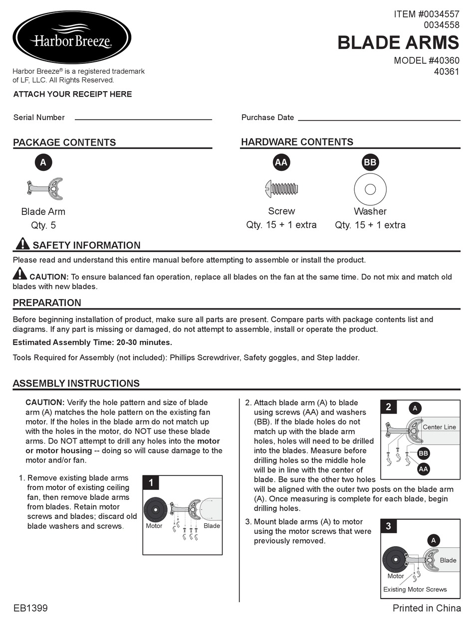 Instruction Installation Guide And Owner S Manual For Harbor Breeze Crosswinds Ceiling Fan Harbor Breeze Amazon Com Books