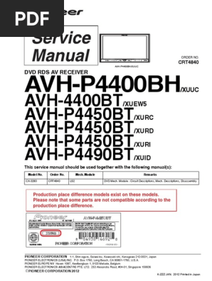 Pioneer Avh P4450bt Avh P4490bt Crt4868 Service Manual Download Schematics Eeprom Repair Info For Electronics Experts