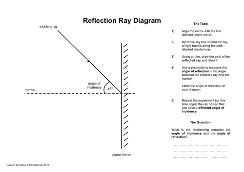 File previews. jpg, 4.17 MB. jpg, 2.15 MB. Hand drawn worksheet for practice constructing ray diagrams for a plane mirror. Answer sheet included. Creative Commons "Sharealike".
