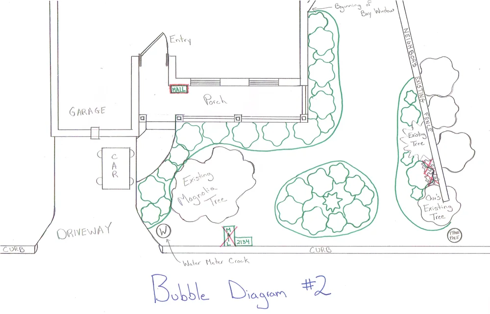 Each of these bubbles represents one project or phase of your landscape plan. By referring to the design concept every time you begin one of the projects, your landscape layout vision will remain cohesive so that the final results will reflect your well-thought-out plan.