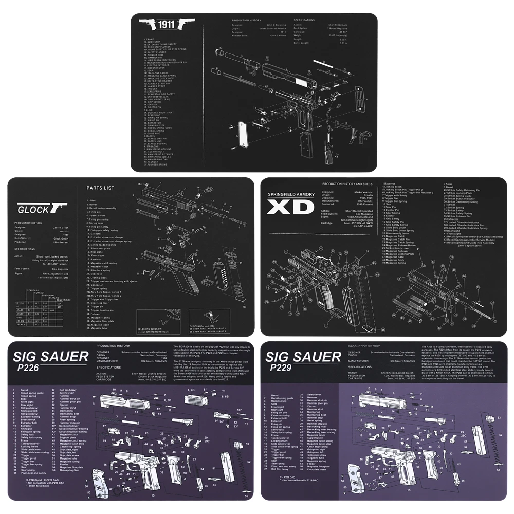 Waterproof gun cleaning rubber mat for 1911 pistol armorers gunsmith disassembly tool with parts list weapon patches bench pads