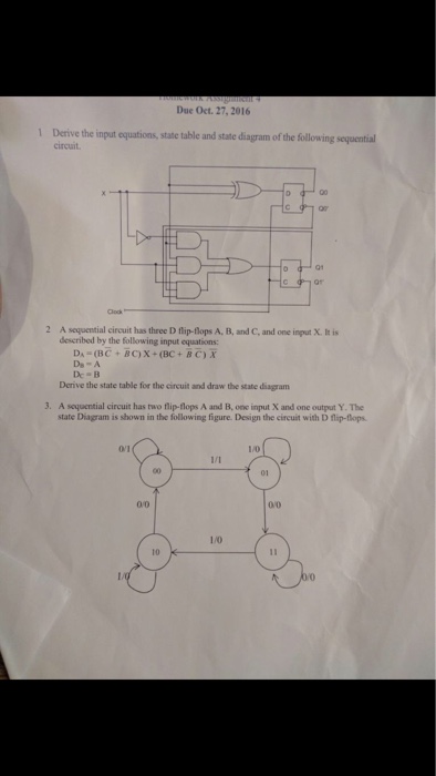 Derive the state table and state diagram for the sequential circuit. Q.5.20: Design the sequential circuit specified by the state diagram of Fig. 5.19 using T flip-flopsPlease subscribe to my channel. Wish you success,Dhiman K... State Diagrams and State Table Examples. Example 1; In a circuit having input pulses x 1 and x 2 the output z is said to be a pulse occurring with the first x 2 pulse immediately following an x 1 pulse. State Table: Alternatively: Example 2; A pulsed sequential circuit has two input pulses x 1, x 2 and a single output Z. Sequential Circuit Analysis - From sequential circuit to state transition diagrams. Question 1: Design the sequential circuit specified by the state diagram of the figure below, using D flip-flops. a) Derive the state table. b) Derive the flip-flop state and the input equations. c) Draw the logic diagram of the circuit using D flip-flops and externals gates.