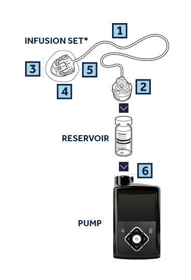 3 Insertion Site Section 4 Cannula 5 Adhesive Pump 6 Reservoir Compartment 7 Piston 1 2 6 Reservoir *Quick-set® infusion set shown in illustration . Pump Mechanics and the Delivery of Insulin Before we begin, let's make sure you know how insulin is delivered when using an insulin pump . The parts that make up the pump's delivery