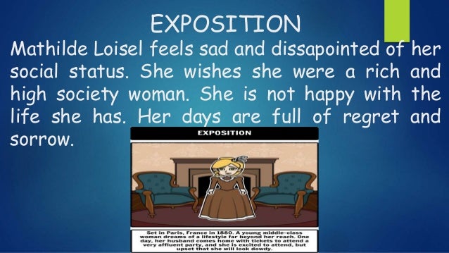 The Necklace plot diagram - The Necklace Summary EXPOSITION CONFLICT RISING ACTION What a stunning necklace! Set in Paris, France in 1880. A young middle-class.