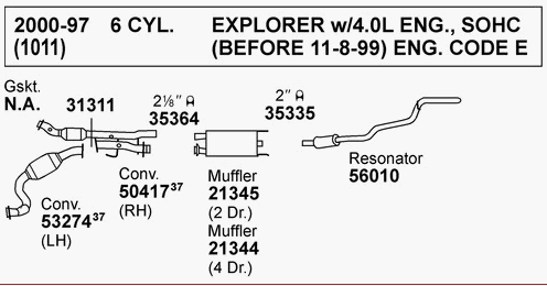 Engine Fuel System Exhaust Block Heater: Carburetor Throttle Linkage Fuel Tank, In-cab Fuel Tank, Auxiliary Exhaust Muffler Bracket 5.0L, muffler, from 01/27/1998. 4.0L over head valve. From 01/30/1998. Assembly. Get the best deals on Exhaust Systems for Ford Explorer when you shop the largest online selection at eBay.com. Free shipping on many items | Browse your favorite brands | affordable prices.