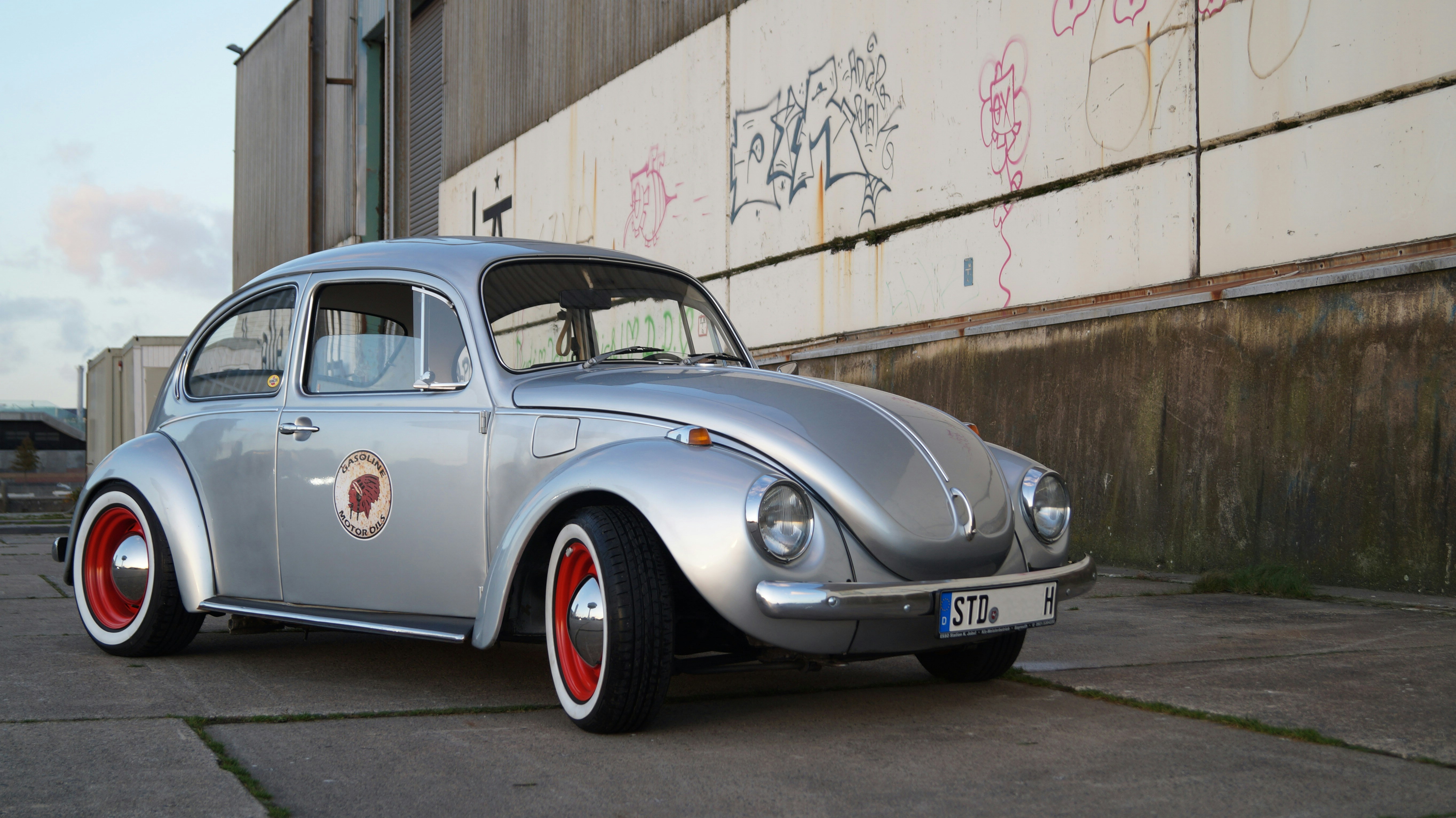 VW Käfer 1302, built 1971 on Saturday afternoon (Nov. 2017) in the port of Hamburg. Custom suspension; Wheels: Front 175/65 R16, Rear 205/65 R16.