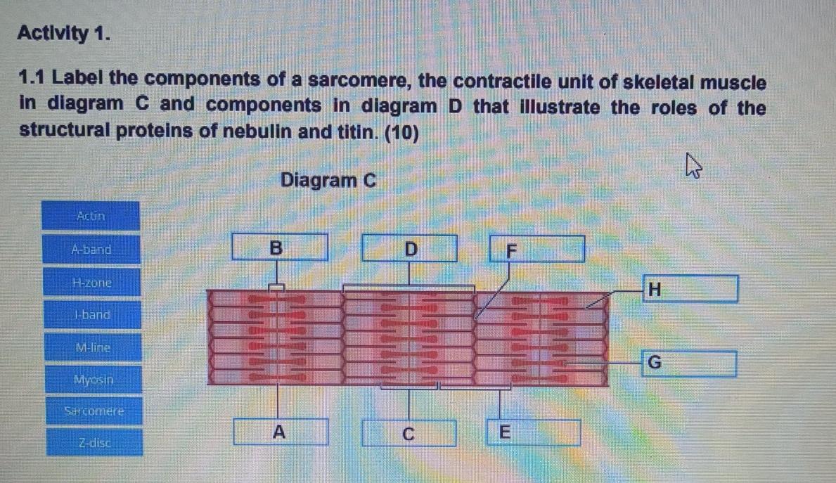 Sarcomere Diagram Labeled Sarcomere Diagram Labeled. Start studying Sarcomere Labeling. Learn vocabulary, terms, and more with flashcards, games, and other study tools. As will soon be described, the functional unit of a skeletal muscle fiber is the sarcomere, a highly organized arrangement of the contractile myofilaments actin . Draw your own diagram of two sarcomeres.