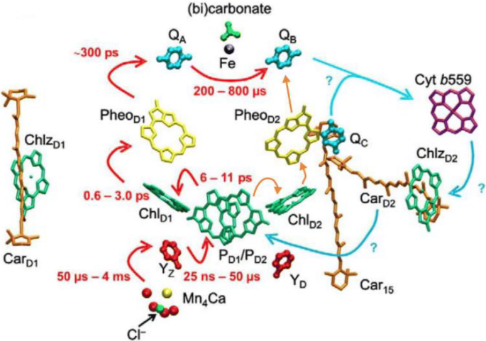 Difference Between Photosystem 1 and Photosystem 2 ... The key difference between photosystem 1 and photosystem 2 is that the photosystem 1 has a reaction centre composing of chlorophyll a molecule of P700 that absorbs light at a wavelength of 700 nm. On the other hand, the photosystem II has a reaction centre comprising chlorophyll a molecule of P680 that absorbs light at a wavelength of 680 nm. Table of Contents — January 5, 2022, 119 (1) | PNAS Photosystem II (PSII) enables global-scale, light-driven water oxidation. Genetic manipulation of PSII from the mesophilic cyanobacterium Synechocystis sp. PCC 6803 has provided insights into the mechanism of water oxidation; however, the lack of a high-... Christopher J. Gisriel, Jimin Wang, Jinchan Liu, David A. Flesher, Krystle M. Reiss, Hao-Li Huang, Ke R. Yang, William H. … Photosystem II - an overview | ScienceDirect Topics Photosystem II particles were prepared from spinach chloroplasts using Triton X-100 (1) and, in most cases, stored in liquid nitrogen with 30% ethylene glycol. Recovery of chlorophyll in the particles by this method was about 30%. The particles had oxygen evolution activity ranging from 250 to 400 μmol O 2 mg −1 chlorophyll h −1. Mechanism and energy diagram for O-O bond formation in the ... The recent finding of a transition state with a significantly lower barrier than previously found, has made the mechanism for O-O bond formation in photosystem II much clearer. The full mechanism can be described in the following way. Electrons ...