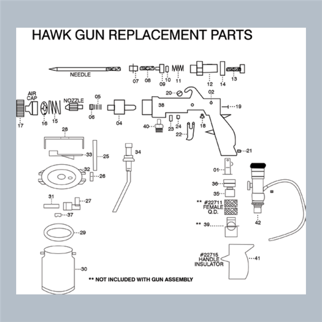 Hvlp Spray Gun Parts Diagram - schematron.org A Spray Gun. ProLine Turbine Paint Spray Gun Parts Parts breakdown for TP ProLine after) and 1-Qt Cup included with SHOWTIME 90 HVLP Turbine Spray Systems. - HVLP Gravity Feed Spray Gun and Cup_Rev 8/24/ . After opening the carton, unpack your new Spray Gun and related parts & acces- sories. Please inspect it carefully for .. PARTS DIAGRAM. Campbell Hausfeld HV2500 Parts Diagram for Spray-Gun Parts Campbell Hausfeld HV2500 Parts Diagram for Spray-Gun Parts. Order Status. Get Support. 1-877-737-2787. Hours of Operation. M-F 9AM-6PM ET. Sat 9AM-5PM ET. Contact Us ». Name. Kohler HAYES SPRAY GUN CO. Parts Diagram for K91-31509 ... Kohler HAYES SPRAY GUN CO. K91-31509 HAYES SPRAY GUN CO. Exploded View parts lookup by model. Complete exploded views of all the major manufacturers. It is EASY and FREE Flg4 Gravity Feed Spray Gun and Cup gun inlet pressure, as measured at the gun inlet. An air cap test kit (see Accessories) should be used to insure 10 psi cap pressure is not exceeded. FLG4 GRAVITY FEED SPRAY GUN AND CUP The No. 3 (HVLP) air cap requires a 13 cfm air supply at the gun inlet of 23 psi max., measured with the trigger pulled. CUP DESCRIPTIONS 702576 - 900 cc ...