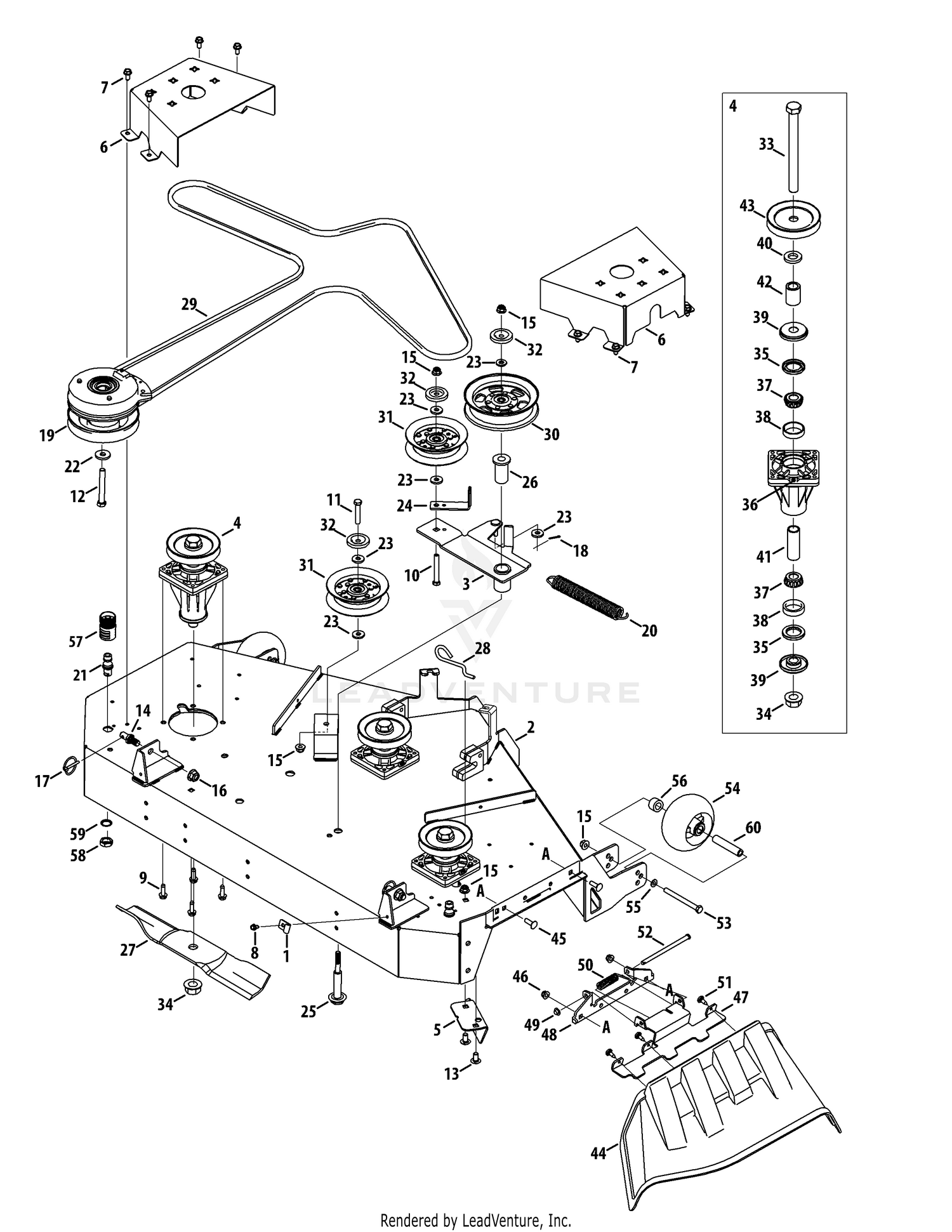 Cub cadet 44 mower deck belt diagram Install and route the new belt according to the routing diagram. This is the specific diagram for your mower that gives the order for replacing the belt around the pulleys on your Cub Cadet lawn mower. Use a 38 socket or wrench to remove the belt covers from the deck. CUB CADET DECK BELT FOR 44.