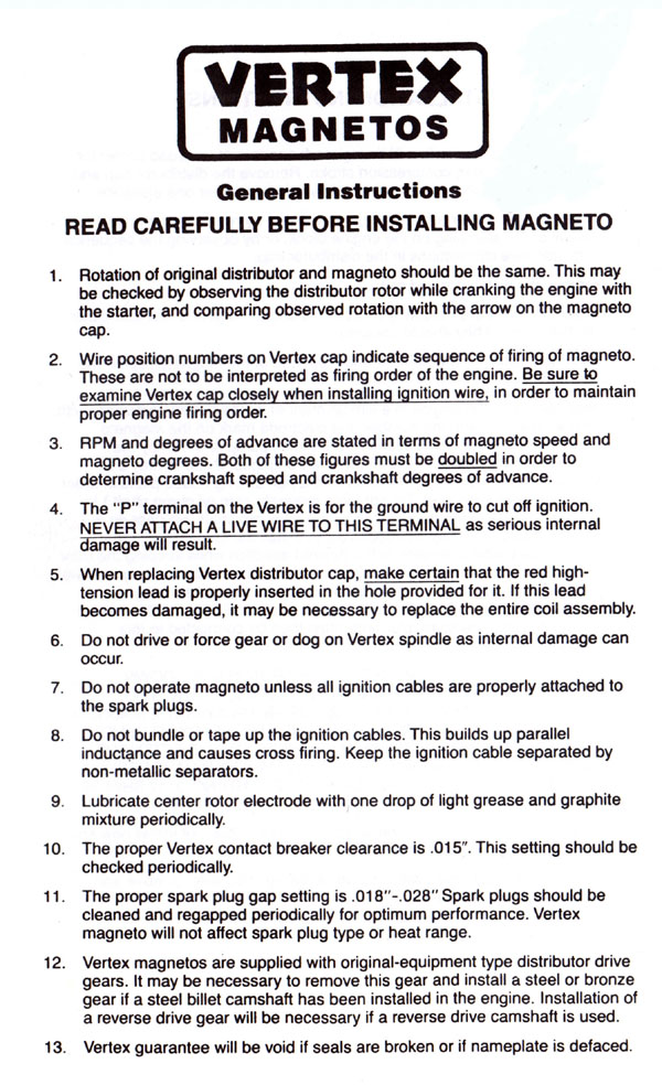 schematron.org › vertex-magneto-wiring-diagramVertex Magneto Wiring Diagram - schematron.org Oct 12, 2018 · Vertex OAC Magneto Wiring Instructions 1. If the engine is equipped with carbon-center “Where Performance Comes Down to the Wire!” 3. Wire the magneto, external coil and kill switch as shown in the wiring diagram. 4. Connect the grounding switch or Vertex start relay to the magneto "P" terminal.